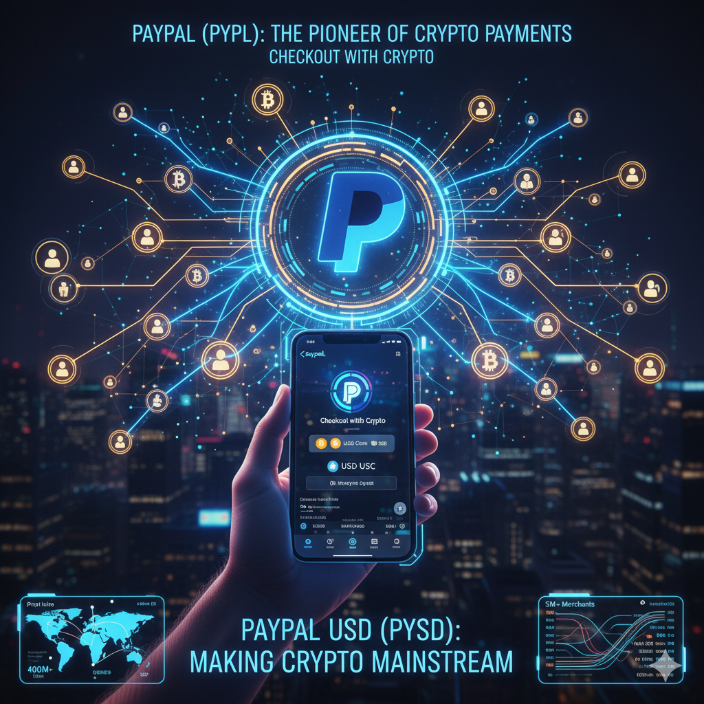 - PayPal (PYPL, 페이팔): ‘가상화폐 결제’ 분야의 ‘선구자’입니다. 전 세계 수억 명의 사용자와 수백만 개의 가맹점을 보유한 페이팔은 일찌감치 사용자가 코인을 ‘사고, 팔고, 보유’하며, 심지어 ‘가맹점 결제’까지 할 수 있는 ‘Checkout with Crypto’ 기능을 도입했습니다. 나아가 ‘페이팔 USD(PYUSD)’라는 자체 스테이블코인을 발행하며