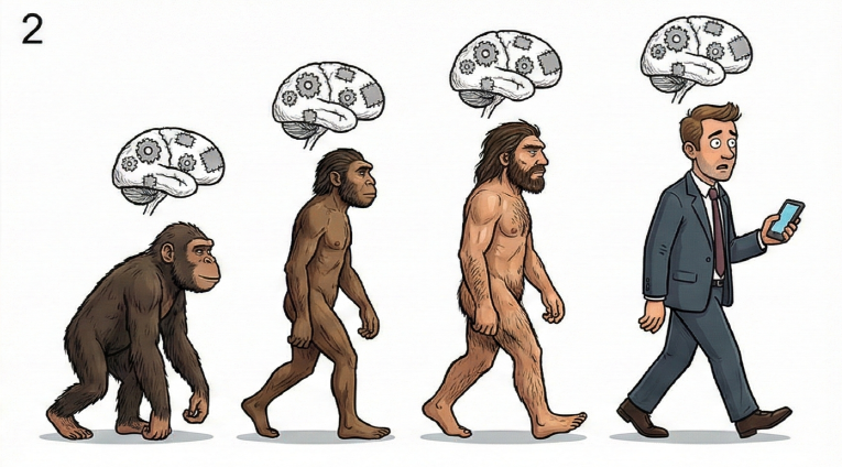 6. 심리적 붕괴: 마음은 언제나 위태롭다 진화는 우리에게 이성적인 ‘숙고 체계’를 주었지만, 위급 상황에서는 여전히 원시적인 ‘반사 체계’가 작동한다. 스트레스, 피로, 불안 상황에서 우리는 쉽게 이성을 잃고 충동적으로 행동하거나 심리적 장애를 겪는다. 이는 뇌의 신구 체계가 완벽하게 통합되지 못했기 때문이다.