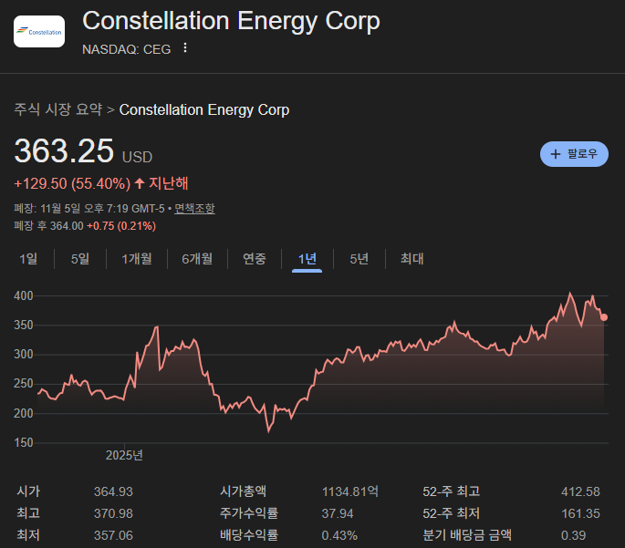 • Constellation Energy (CEG): 미국 최대의 원전 운영사