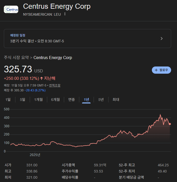 • Centrus Energy (LEU): 서방의 유일한 ‘HALEU’ 공급사