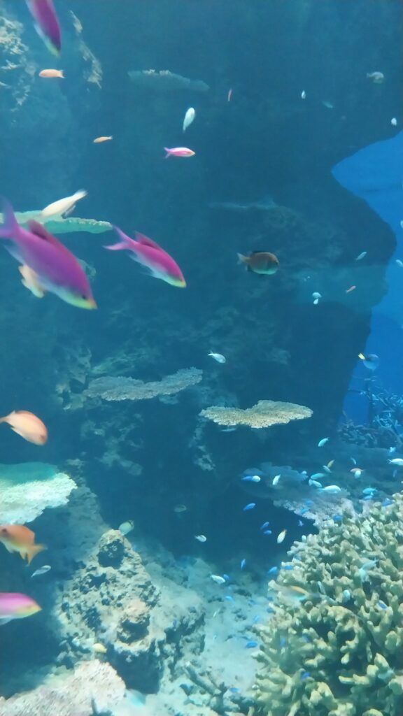 - 관람 포인트: 나선형 구조 덕분에 처음에는 수면 근처에서 고래상어를 내려다보고, 점차 내려가면서 배 밑부분과 유영하는 모습을 다각도로 관찰할 수 있습니다. 고래상어뿐만 아니라 대형 가오리, 참치 떼, 바다거북 등이 어우러져 실제 태평양의 생태계를 완벽하게 재현하고 있습니다. 아이들은 거대한 고래상어가 지나갈 때마다 “우와!”를 연발하며 눈을 떼지 못했습니다.