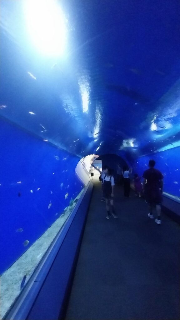 바닷속으로의 초대, 아쿠아 게이트 (Aqua Gate) 에스컬레이터를 타고 최상층으로 올라가면 본격적인 관람이 시작됩니다. 입구인 ‘아쿠아 게이트’는 투명한 터널형 수조로 되어 있어, 마치 바닷속을 걸어 들어가는 듯한 몰입감을 줍니다. 머리 위로 유유히 지나가는 물고기들을 보며 아이들의 기대감은 최고조에 달했습니다. 이곳을 통과하면 일본의 숲을 재현한 구역을 지나, 가이유칸의 심장인 ‘태평양’ 구역으로 자연스럽게 이어집니다.