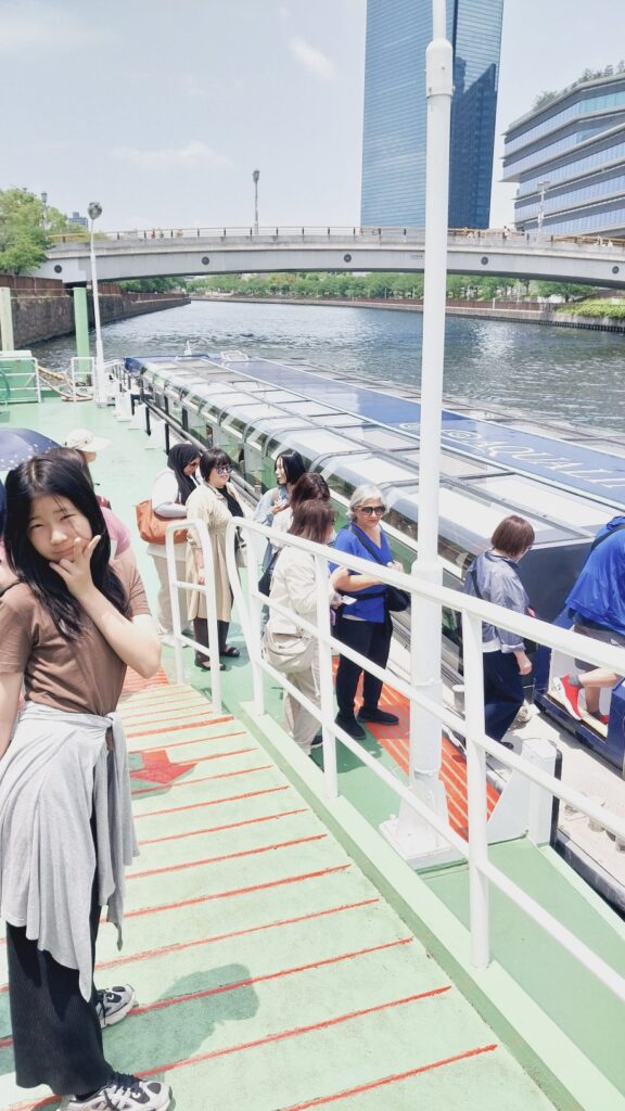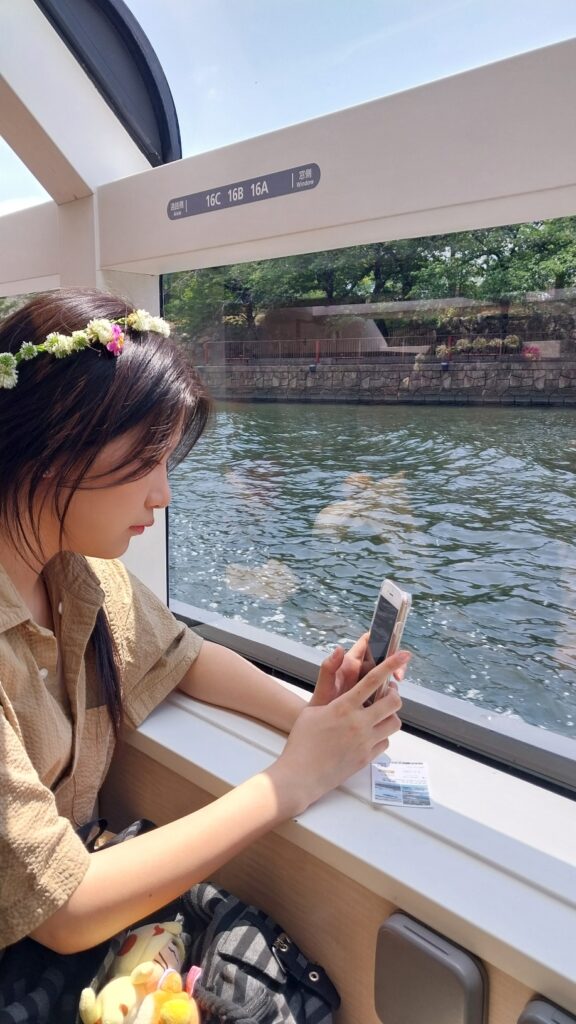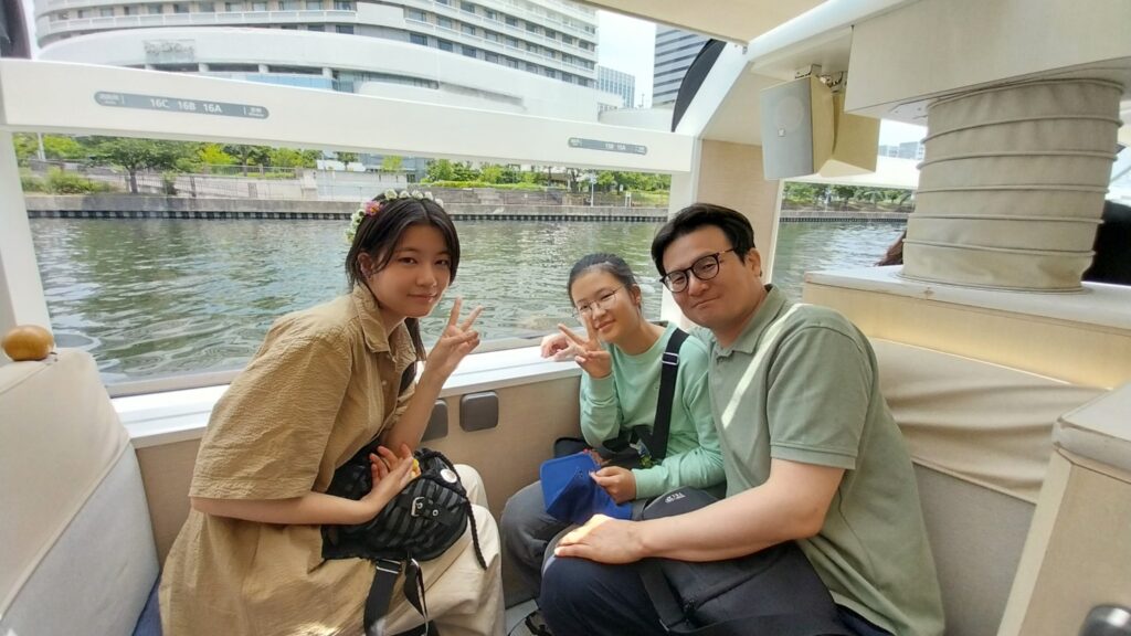 손 흔들어주는 사람들, 오사카만의 정겨운 풍경 [이미지 삽입: 강가 카페나 공원에서 사람들이 보이는 사진] 배를 타고 가는 동안 가장 인상 깊었던 점은 ‘소통’이었습니다. 강변에 조성된 공원이나 테라스가 있는 카페, 레스토랑에서 식사하던 현지인들과 관광객들이 아쿠아 라이너가 지나갈 때마다 손을 흔들어 줍니다. 저희 가족도 창문 너머로 함께 손을 흔들며 인사를 나누었는데, 아이들이 정말 즐거워했습니다. 한강 유람선에서는 겪어보지 못한, 강과 도시와 사람이 밀접하게 연결되어 있다는 느낌을 주는 따뜻한 경험이었습니다.