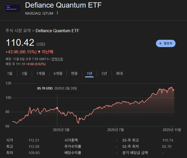 - 이것이 핵심입니다. 국내 ETF들이 2025년에야 만들어진 것과 달리, QTUM은 2018년부터 시장에서 검증된 ‘선구자’입니다.