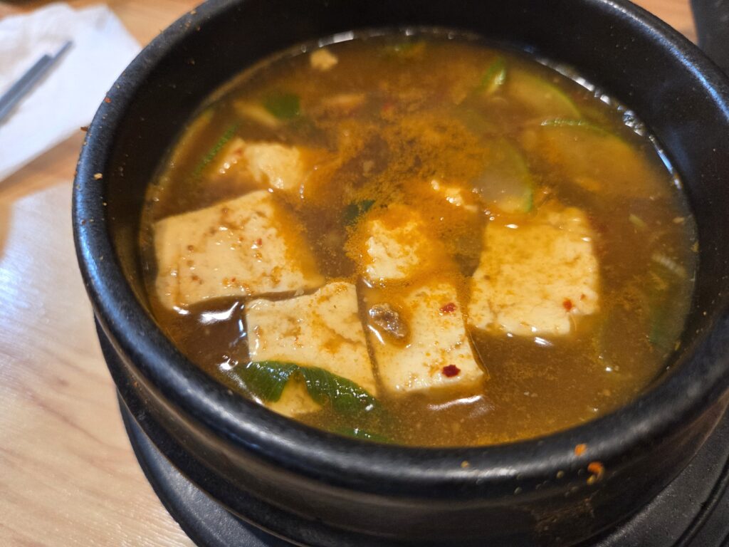 세트 메뉴에 포함된 우렁 된장찌개는 시골 할머니 댁에서 먹던 바로 그 맛입니다. 멸치 육수의 깊은 맛보다는 된장 자체의 구수함과 우렁이의 시원함이 어우러진 맛입니다. 두부도 큼직하게 들어가 있어 국물만 떠먹어도 밥 한 공기는 거뜬할 정도였습니다. 우렁이박사의 단독 메뉴로 팔아도 되겠습니다.