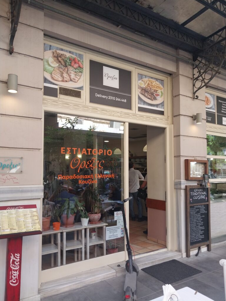 캐주얼한 미식의 즐거움, ‘Εστιατόριο Όρεξις’에서의 점심 오전 업무를 마치고 현지 동료가 안내한 곳은 시내에 위치한 ‘Εστιατόριο Όρεξις (Estiatorio Orexis)’라는 식당이었습니다. ‘Orexis’는 그리스어로 ‘식욕’을 뜻한다고 하니, 이름부터 믿음이 가죠? ㅋㅋ 이곳은 정해진 메뉴판을 보고 주문하는 일반적인 레스토랑이라기보다는, 진열된 수십 가지의 요리를 눈으로 직접 보고 원하는 만큼 무게를 달아 주문하는 뷔페식 델리(Deli) 스타일의 캐주얼 식당이었습니다. 실내와 실외 테이블에서 자유롭게 식사하는 현지인들, 그리고 끊임없이 드나드는 테이크아웃 손님들과 배달 기사들의 모습에서 이곳이 테살로니키 시민들의 ‘부엌’과 같은 곳임을 짐작할 수 있었습니다.