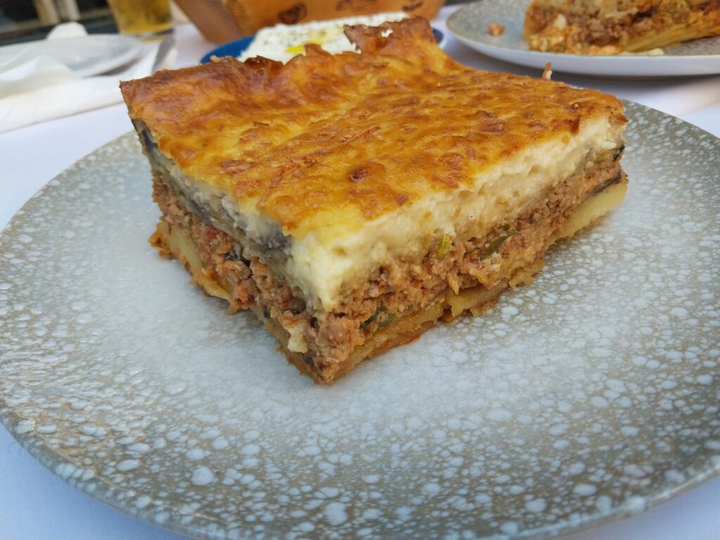 - 무사카(Moussaka): 얼핏 보면 이탈리아의 라자냐와 비슷해 보이지만 맛의 깊이가 달랐습니다. 밀가루 반죽 대신 얇게 썬 가지와 감자를 층층이 쌓고, 그 사이에 다진 고기와 베샤멜 소스를 듬뿍 얹어 구워낸 요리입니다. 라자냐보다 훨씬 담백하면서도 부드러운 식감이 일품이었고, 가지 특유의 풍미가 고기의 육즙과 어우러져 속을 편안하면서도 든든하게 채워주었습니다. 자극적이지 않은 건강한 맛이었습니다.