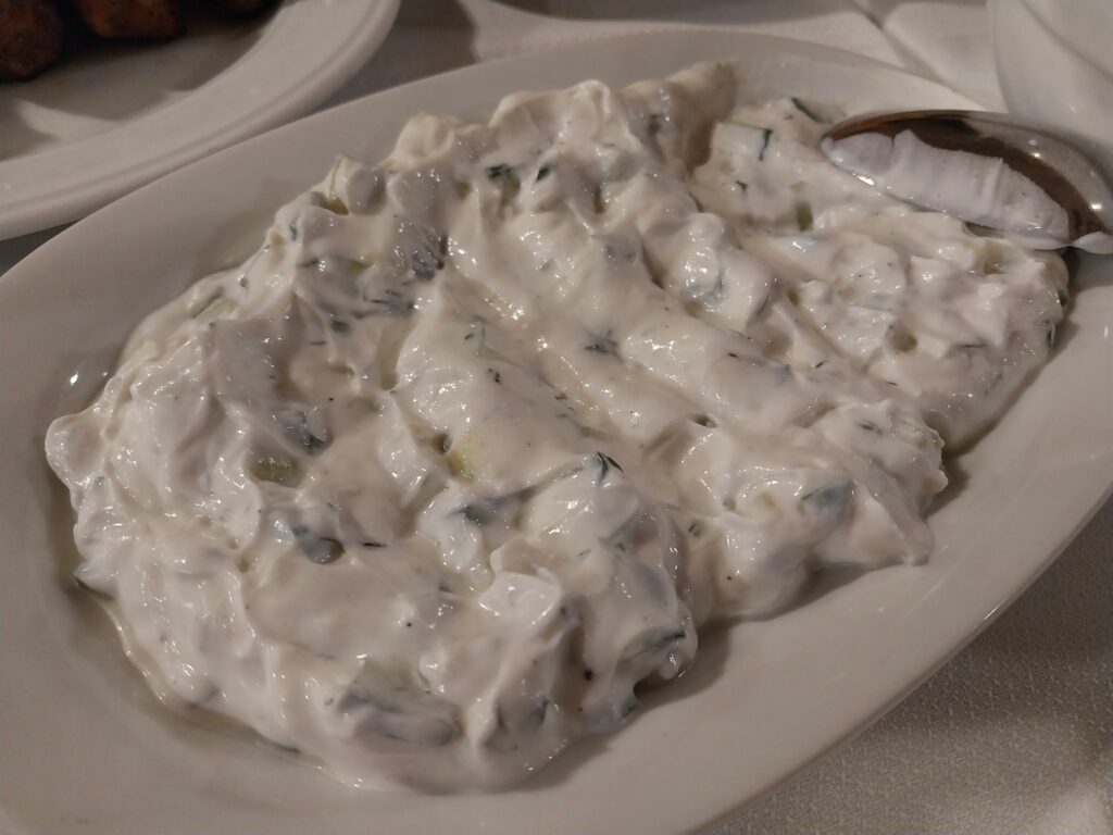- 기로스(Gyro)와의 환상 궁합: 점심에 이어 또 주문한 미트 스틱과 얇게 썬 고기인 기로스(Gyro)를 이 차지키 소스에 듬뿍 찍어 먹으니 맛이 배가되었습니다. (현지인 동료가 추천해준 식사법입니다.) 고기의 기름진 맛을 상큼한 요거트와 마늘 향이 깔끔하게 잡아주어, 무한대로 들어갈 것 같은 중독성을 자랑했습니다. 현지 동료가 알려준 “고기와 감자튀김을 차지키에 비비듯 찍어 먹어라”는 팁은 정말 유용했습니다.